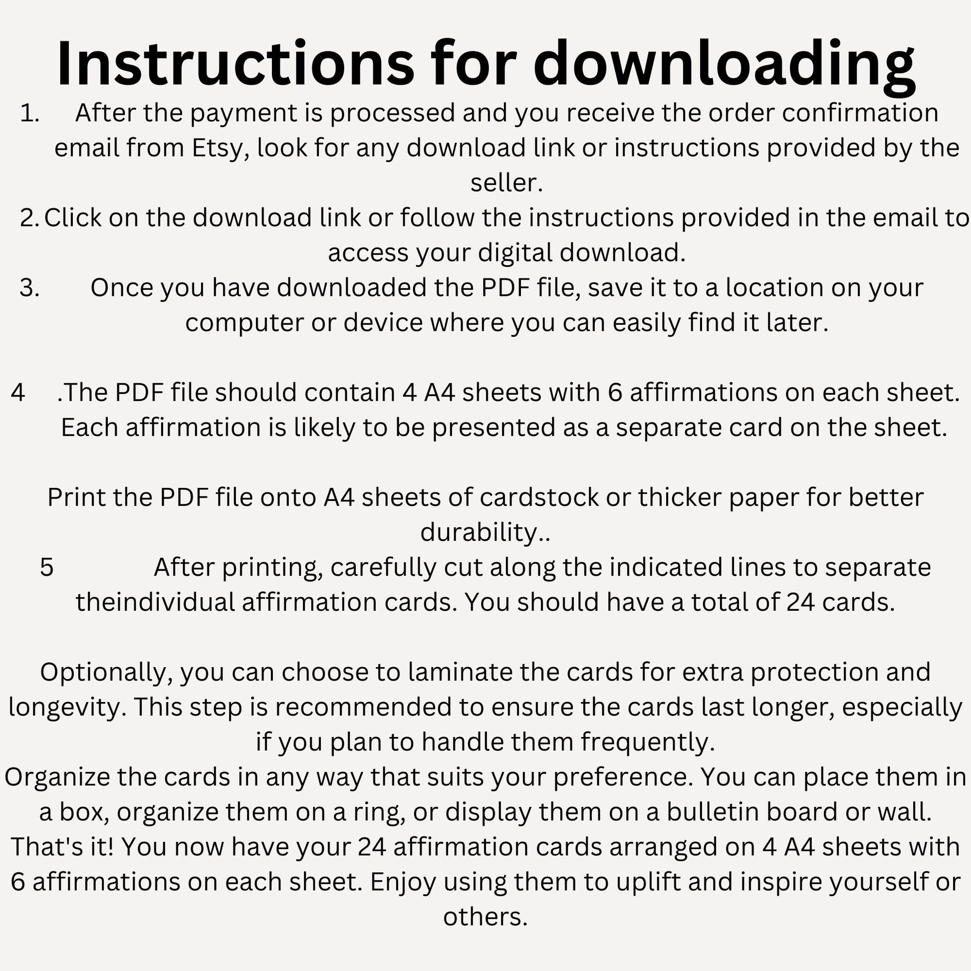 Support your journey towards addiction recovery with these 24 printable affirmation cards. Each card is thoughtfully designed to provide encouragement, inspiration, and a positive mindset as you navigate the challenges of recovery. These cards can serve as powerful reminders of your strength, resilience, and the progress you're making every day.