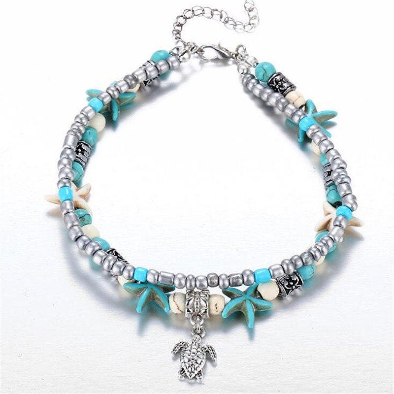 Embrace some ethnic vibes on the beach or in your yoga session with turtle charm multilayer vintage anklet .