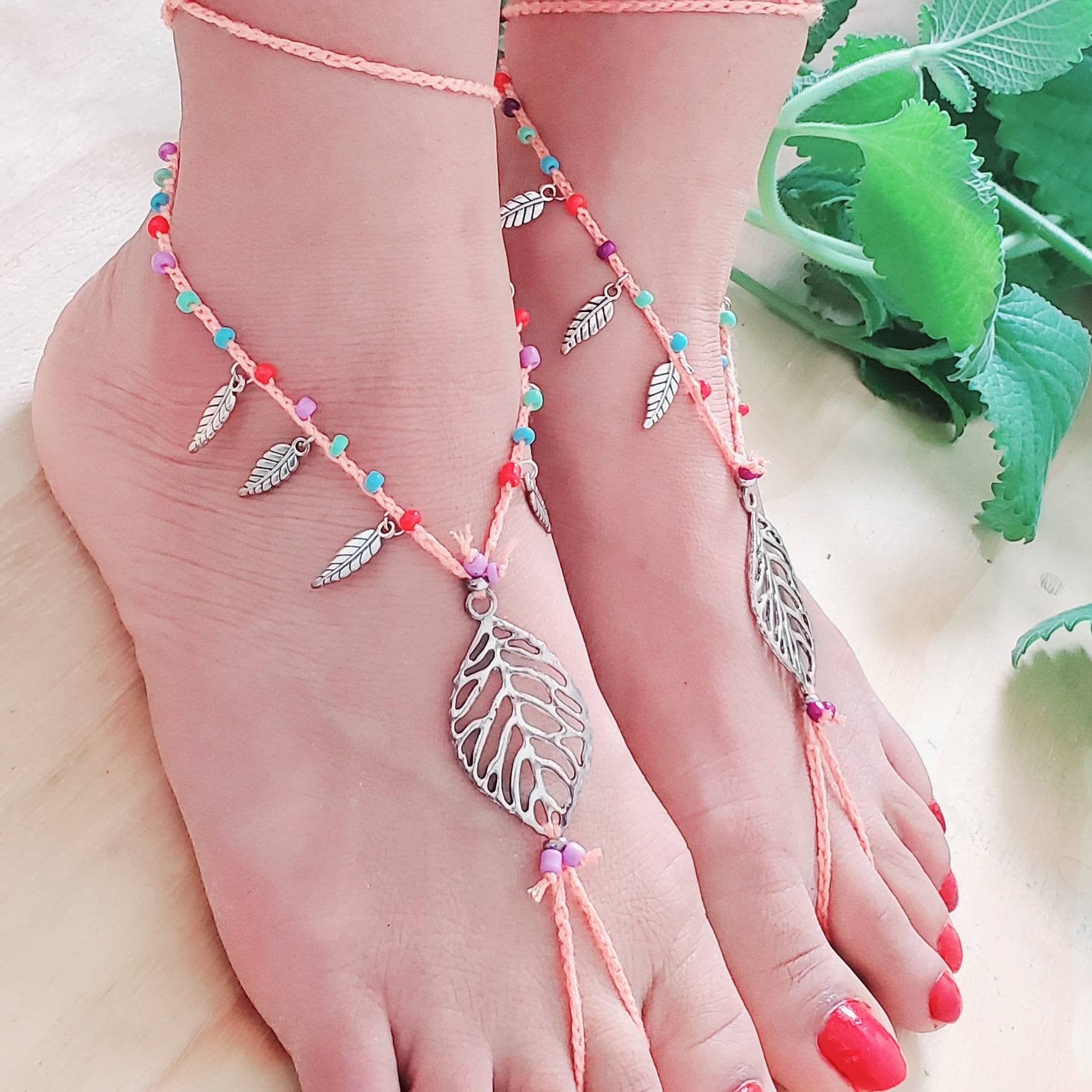 Embellish your feet in style with our boho barefoot sandals. They will make you look perfect on your next barefoot adventure be it a beach wedding, honeymoon, maternity shoot or yoga adventure. These sandals are super comfortable and durable also. They can be wear with or without shoes.