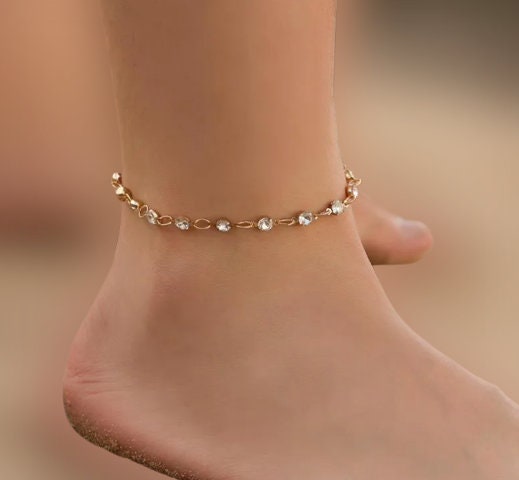 Crystal Anklet,Dainty anklet,Gold plated anklet ankle bracelet with cz stones, foot jewelry