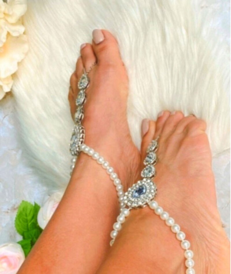 These crystal rhinestones barefoot sandals are gorgeous and looks even more when you pair it with your beautiful dress on your d day or special occasions. You can wear it with or without shoes they add glam both ways.