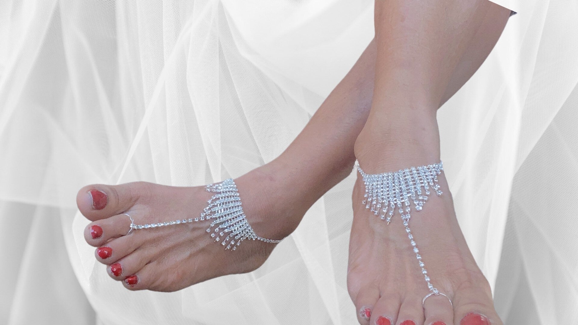 Add a little spark and shimmer with these wedding barefoot sandals ,they are made of rhinestones crystals and compliment any outfit. Enjoy your next barefoot adventure with these barefoot crystals. They are perfect for beach wedding.