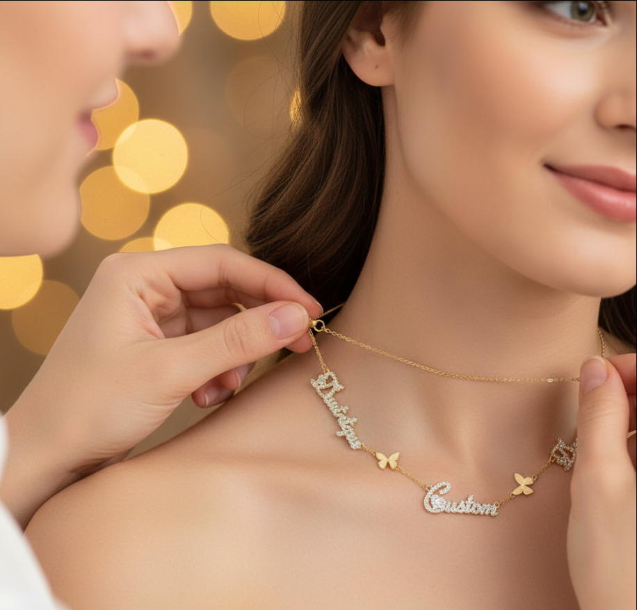 Make your name sparkle with stunning clarity. Our Custom Multi CZ Name Necklace is crafted to celebrate identity, love, and the stories that matter most. Every letter is carefully set with brilliant CZ stones on durable stainless steel, creating a piece that shines beautifully in everyday moments and special occasions.