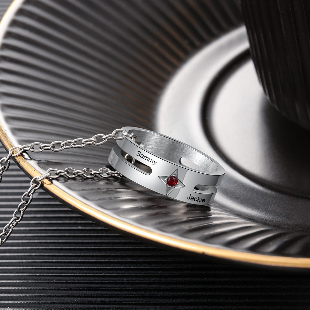 These customized ring necklace is a great way to exchange wows between two people who are connected via souls . They can be personalized with your birthstone and engraving your favourite names . These necklaces are best gift for keepsake . It can be worn day to day wear and looks elegant .