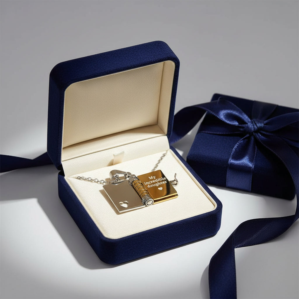 A tiny book with a big meaning. This Openable Book Locket Pendant Necklace is designed for sons and daughters who love meaningful keepsakes. The mini-book pendant opens like a real book, making it a charming symbol of their story, growth, and dreams ahead.