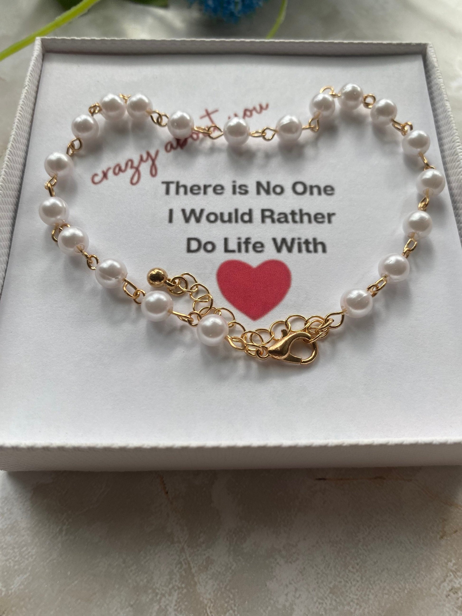 Pearl anklet,freshwater pearl anklet for her,Valentine’s day jewelry for wife, message card jewelry for Valentine’s Day ,To my wife gift