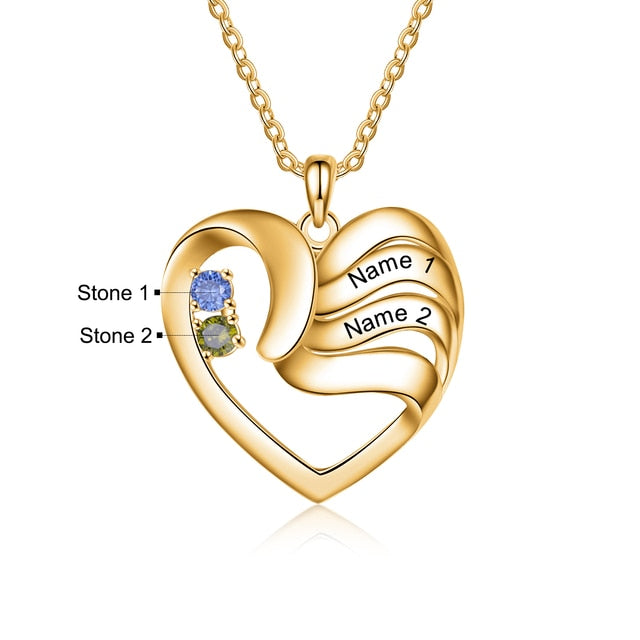 Keywords: personalized heart necklace, custom name necklace, birthstone necklace for mom, family name jewelry, engraved heart pendant, mother’s necklace with kids’ names.
